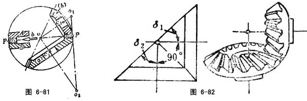 冠轮副锥齿轮副的假想平顶齿轮副(图6-81)。以锥齿轮副的锥顶o与节点P的连线