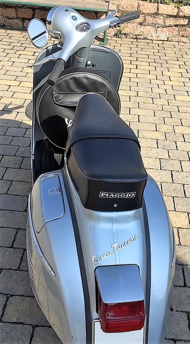 在1960年代末期,Vespa面向欧洲125cc学员级市场推出了125 GTR版,从1968年持续生产至1976年,累计产量约45,000–52,000辆。它在外观上保留了Sprint Veloce的流线车身,却加装了更大的圆形大灯与镀铬装饰,内在则沿用了125 GT的引擎架构并于1975年前后将传动口由双口改为三口,以提升动力输出与耐用性。这款结合优雅外观与运动性能的车型,至今仍被收藏家视为“大型车架”时代的经典之作。
